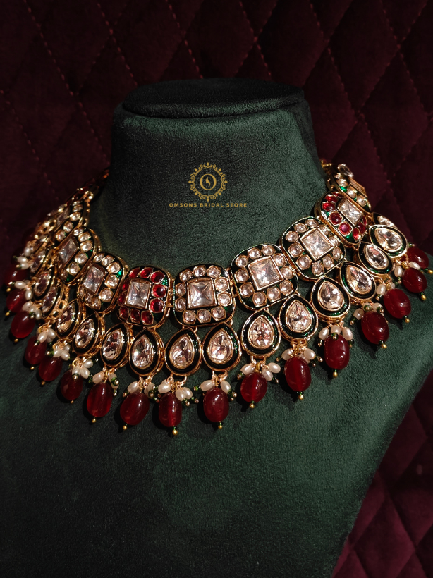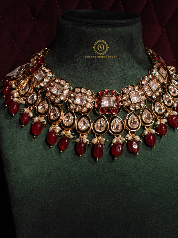 This set goes well with bridal lehengas and sarees. Brides can wear it on wedding day, reception, or festival.