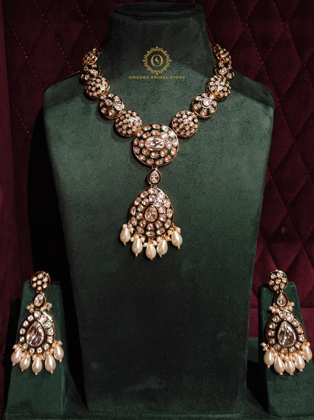 This necklace set is made for traditional wear. It looks neat and beautiful. The design is simple and elegant.