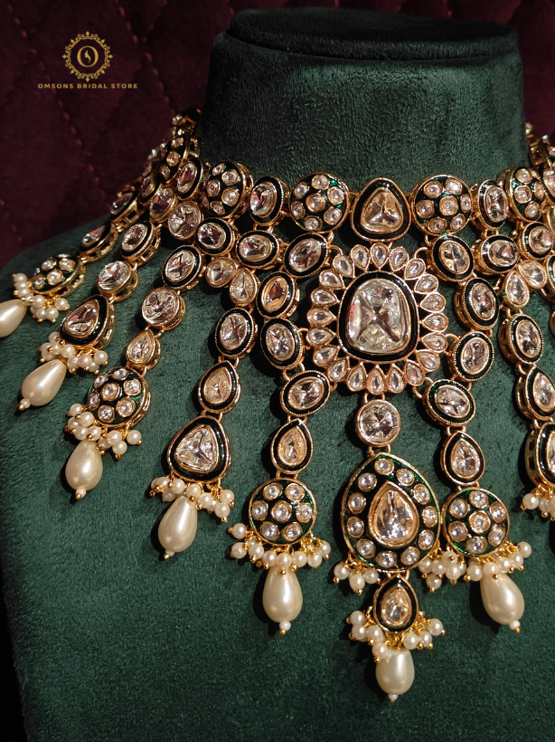 This set goes well with bridal lehengas and sarees. Brides can wear it on wedding day, reception, or festival.