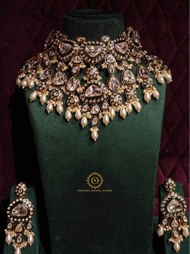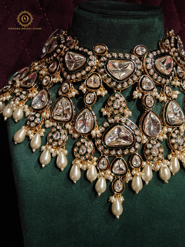 This set goes well with bridal lehengas and sarees. Brides can wear it on wedding day, reception, or festival.