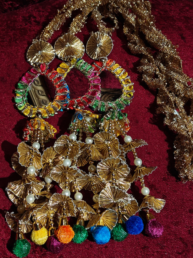 This Parandi is designed to give your braid a fuller, elegant, and traditional look. Made with smooth threads and neat detailing, it adds a stylish touch to any ethnic hairstyle. The long tassels at the end create a beautiful finishing look, perfect for weddings, Punjabi functions, festivals, or daily wear.
